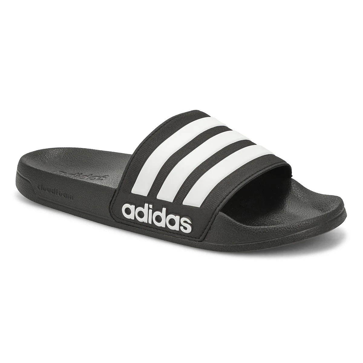 From the beach to the street. These slip-on slides have a pillow-like cushioned footbed for optimal comfort. The bandage-style upper offers a lightweight feel. Features a synthetic upper with a quick dry lining. Slip-on construction in a contoured Cloudfoam Plus footbed. Lightweight EVA outsole. Make the CF Adilette Slide black/ white sport slide from Adidas part of your must-have wardrobe this season!