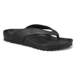 The Arizona EVA white sandal from Birkenstock is a sporty sandal. It’s perfect for anyone who is looking in particular for function and comfort. Modeled on the cork sandal, this sandal is made from especially light and flexible EVA. This high-quality, odor-neutral synthetic material which has been tested for harmful substances is shock-absorbent, waterproof, and skin-friendly. It’s therefore perfect for wearing at the beach, in the garden, or in wellness and spa areas.